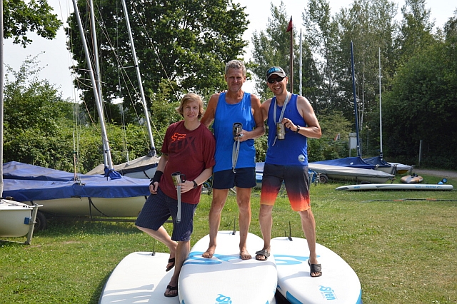 Anschließend fand das nicht ganz ernst gemeinte Staffelrennen statt. Mit einer Poolnudel auf den Board, die Transportart war frei wählbar, fighteten zwei bunt zusammengewürfelte Teams um den Sieg.
